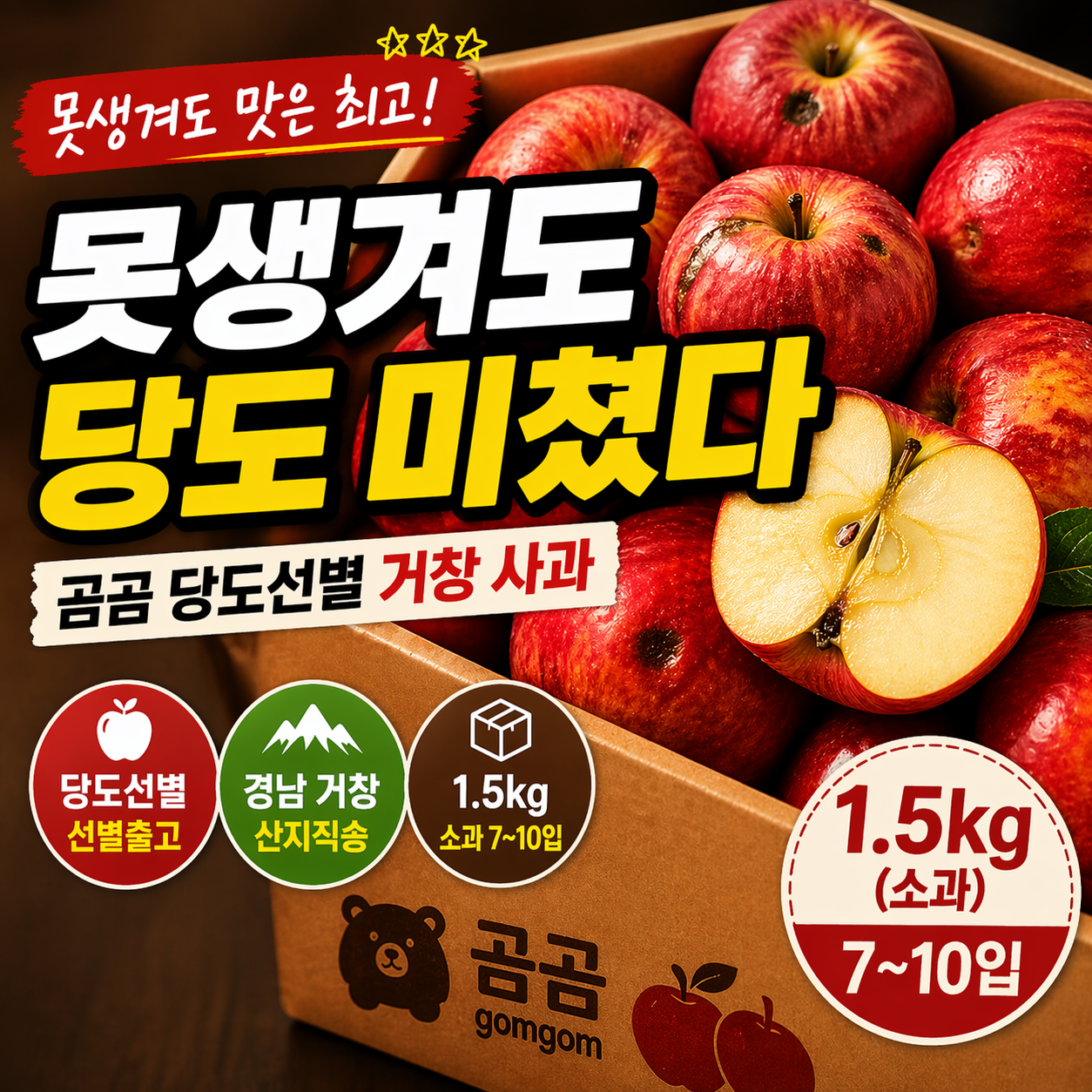 곰곰 당도선별 거창 못생겨도 맛있는 사과, 1.5kg(소과, ..., 1개 - 사과 | 쿠팡