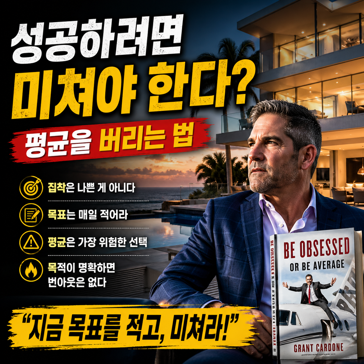 이 영상은 Grant Cardone의 저서 'Be Obsessed or Be Average' 핵심 내용을 바탕으로